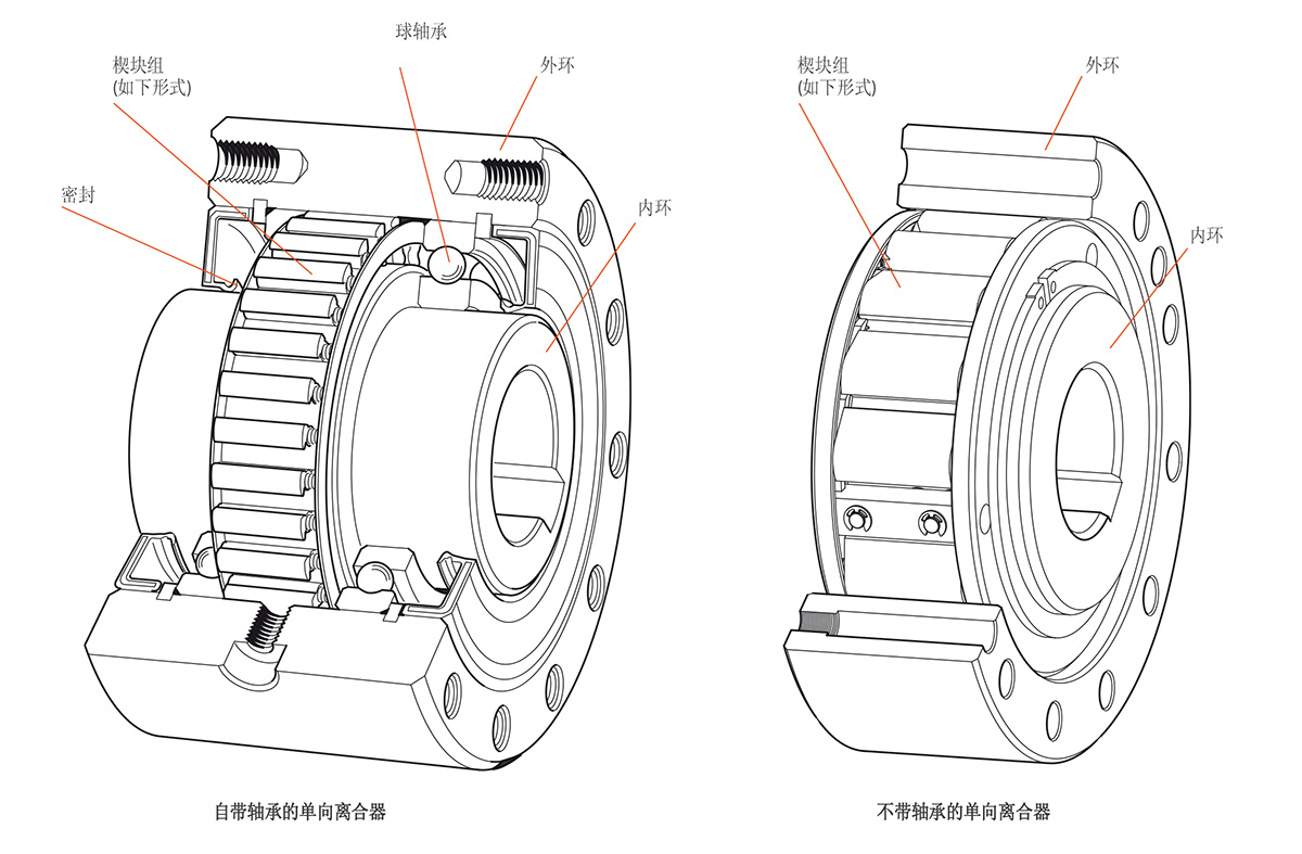 對于單向離合器來說,內(nèi)外環(huán)中心是否對準,這一點十分重要。假如選擇不帶軸承的單向離合