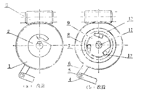 平行加壓整經(jīng)機上落軸的離合器是由蝸輪與另一個固定在傳動軸上的連接塊圖組成的。上軸動作是利用加壓重錘的重力拖動經(jīng)軸實現(xiàn)的這時蝸輪為主動。因此,當(dāng)經(jīng)軸盤片與滾筒未對齊時,經(jīng)軸和傳動軸停止運動,但蝸輪在蝸桿的傳動下繼續(xù)轉(zhuǎn)動,與傳動軸上的連接塊分離。當(dāng)經(jīng)軸與滾筒對齊后,經(jīng)軸在加壓重錘的拖動下,會向滾筒發(fā)生沖擊運動,使蝸輪上的凸塊與連接塊上的凸塊發(fā)生撞擊而損壞,或者使重錘滑輪的支撐桿斷裂。根據(jù)上述情況,我們改用單向離合器圖,解決了上述問題,其作用原理如下: